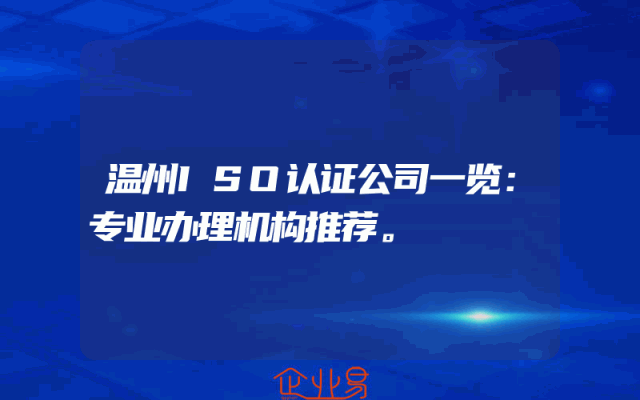 - 温州ISO认证公司一览:专业办理机构推荐。
