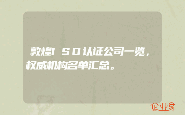 - 敦煌ISO认证公司一览,权威机构名单汇总。