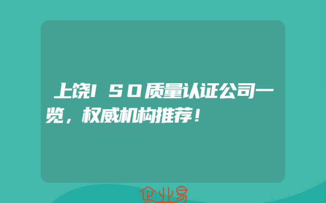 - 上饶ISO质量认证公司一览,权威机构推荐!