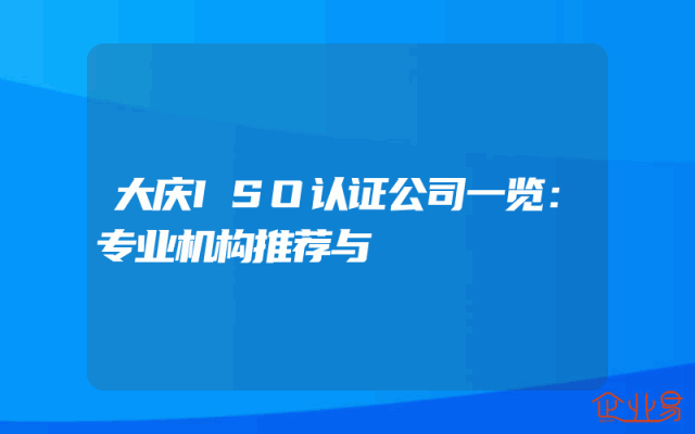 - 大庆ISO认证公司一览:专业机构推荐与