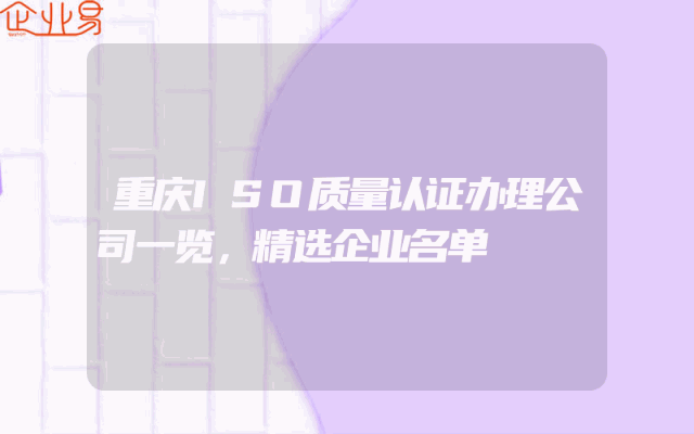 - 重庆ISO质量认证办理公司一览,精选企业名单