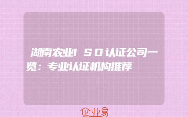 - 湖南农业ISO认证公司一览:专业认证机构推荐