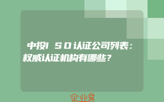 - 中投ISO认证公司列表:权威认证机构有哪些?