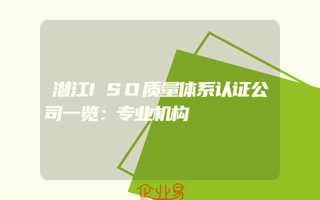 - 潜江ISO质量体系认证公司一览:专业机构