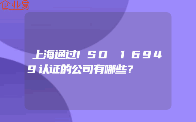 - 上海通过ISO 16949认证的公司有哪些?