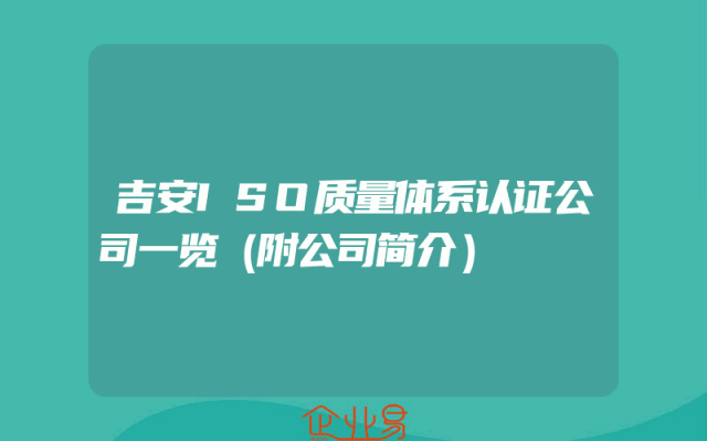 - 吉安ISO质量体系认证公司一览(附公司简介)