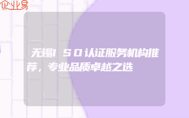 - 无锡ISO认证服务机构推荐:专业品质卓越之选一、引言在日益激烈的市场竞争中,企业的运营不仅需要高效的生产管理和优质的客户服务,还需要符合国际标准的认证来提升企业的竞争力。ISO认证作为企业规范化管理和品质保证的重要手段,已经越来越受
