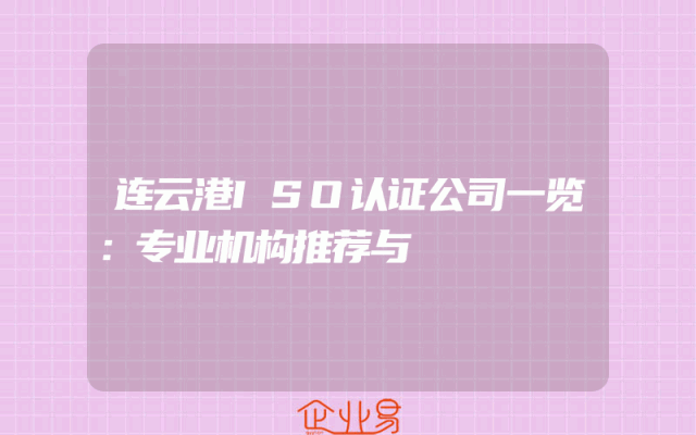 - 连云港ISO认证公司一览:专业机构推荐与