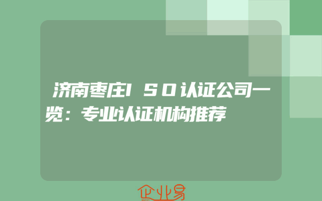 - 济南枣庄ISO认证公司一览:专业认证机构推荐