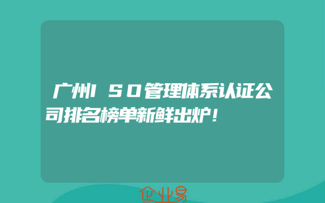 - 广州ISO管理体系认证公司排名榜单新鲜出炉!