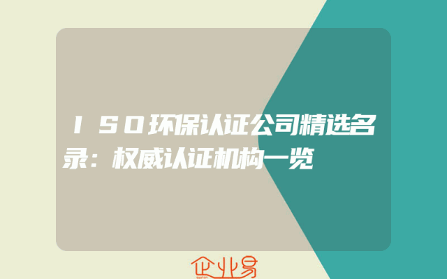 - ISO环保认证公司精选名录:权威认证机构一览