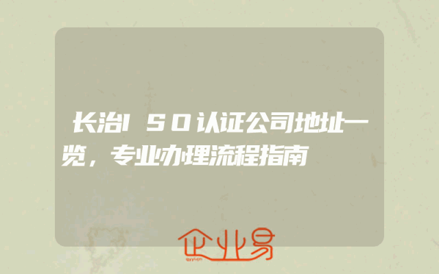 - 长治ISO认证公司地址一览,专业办理流程指南