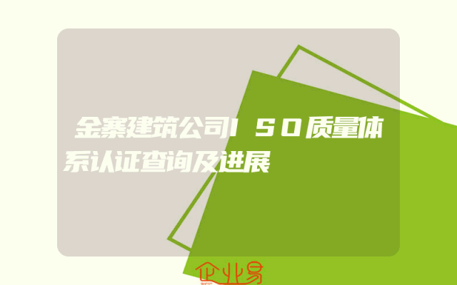 - 金寨建筑公司ISO质量体系认证查询及进展