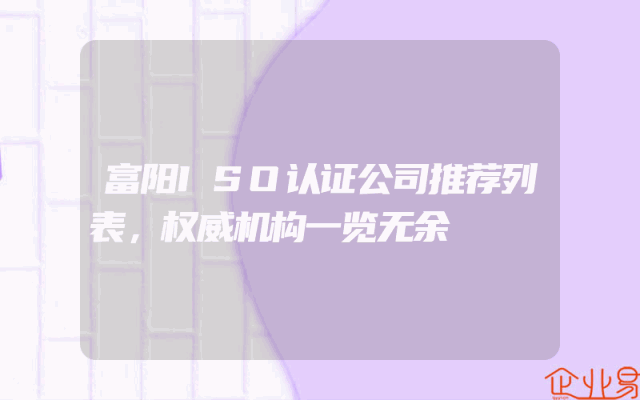 - 富阳ISO认证公司推荐列表,权威机构一览无余