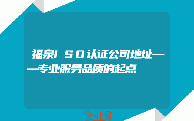 - 福泉ISO认证公司地址——专业服务品质的起点