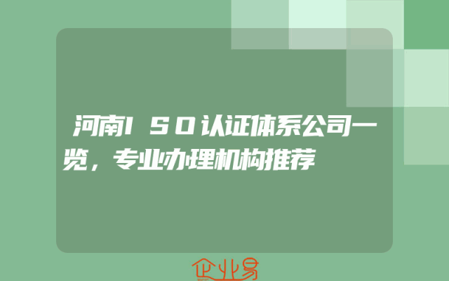 - 河南ISO认证体系公司一览,专业办理机构推荐