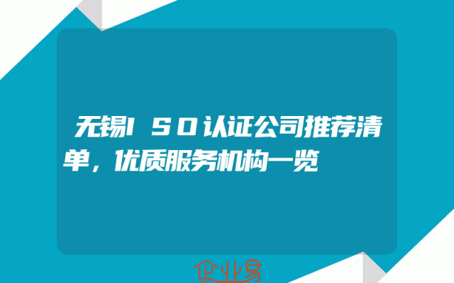 - 无锡ISO认证公司推荐清单,优质服务机构一览
