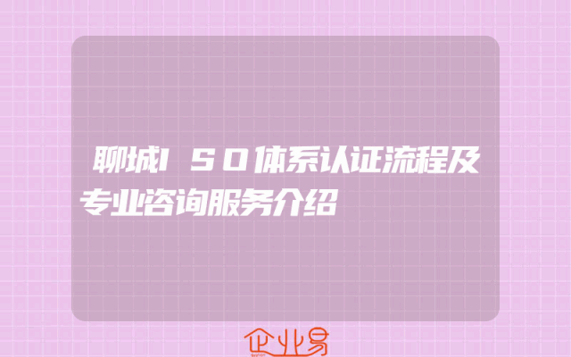- 聊城ISO体系认证流程及专业咨询服务介绍