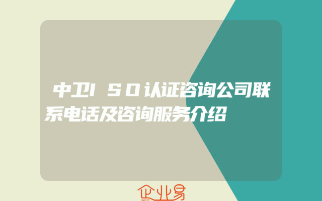 - 中卫ISO认证咨询公司联系电话及咨询服务介绍