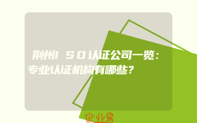 - 荆州ISO认证公司一览:专业认证机构有哪些?