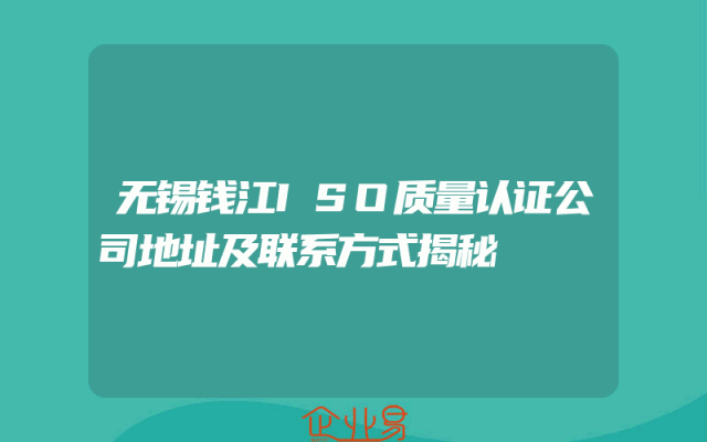 - 无锡钱江ISO质量认证公司地址及联系方式揭秘