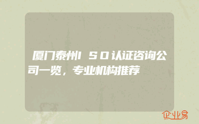 - 厦门泰州ISO认证咨询公司一览,专业机构推荐