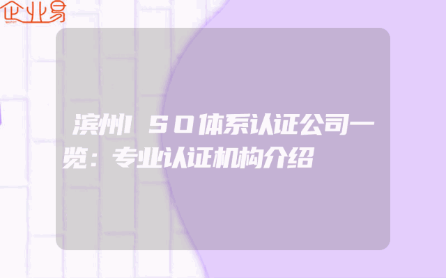 - 滨州ISO体系认证公司一览:专业认证机构介绍