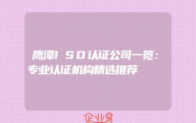 - 鹰潭ISO认证公司一览:专业认证机构精选推荐