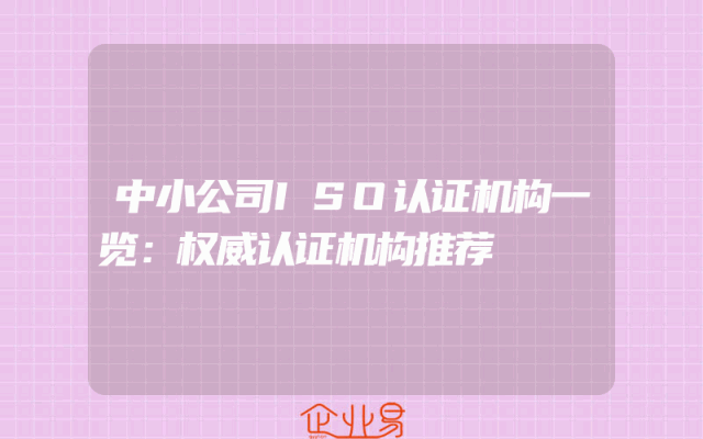 - 中小公司ISO认证机构一览:权威认证机构推荐
