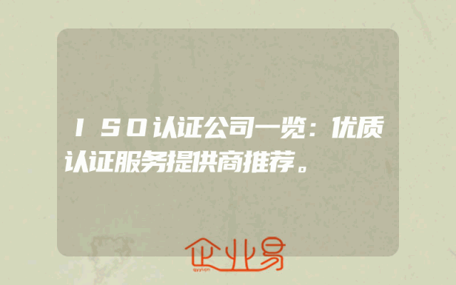 - ISO认证公司一览:优质认证服务提供商推荐。