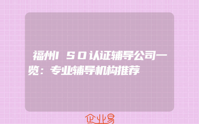 - 福州ISO认证辅导公司一览:专业辅导机构推荐