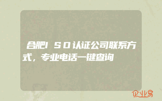 - 合肥ISO认证公司联系方式,专业电话一键查询