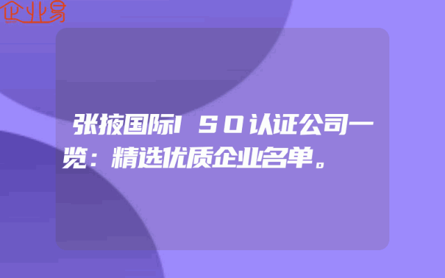 - 张掖国际ISO认证公司一览:精选优质企业名单。