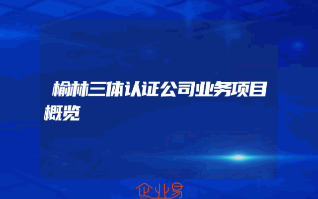 - 榆林三体认证公司业务项目概览一、榆林三体认证公司概述榆林三体认证公司作为一家专业的企业服务提供者,致力于为企业提供全方位的企业资质办理服务。随着市场需求的不断增长和行业政策的不断变化,榆林三体认证公司紧跟时代步伐,为企业提供最新、最全面的业