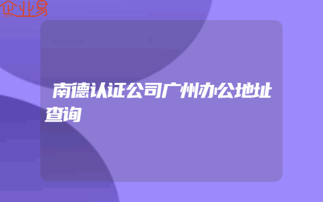 - 南德认证公司广州办公地址查询及相关分析一、南德认证公司介绍南德认证公司作为国内领先的企业服务机构,专注于各类企业资质办理服务,具备深厚的专业知识和丰富经验。为了满足企业对专业资质服务的需求,南德认证公司在全国各大城市设立了办公分支,其中包括