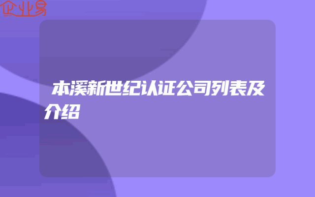 - 本溪新世纪认证公司列表及介绍一、本溪新世纪认证公司概览随着市场经济的发展,企业认证已经成为企业提升品牌形象、增强市场竞争力的关键。本溪新世纪认证公司作为本地区领先的认证服务机构,为企业提供专业、高效的认证服务,帮助企业顺利获得各类资质认证。