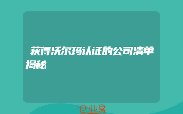 - 沃尔玛认证的公司清单揭秘一、沃尔玛认证概述沃尔玛作为全球最大的零售商之一,其对供应商的选择和认证标准极为严格。获得沃尔玛认证的公司,意味着其产品质量、管理水平和供应链效率得到了国际巨头的认可。本文将为您揭秘哪些公司成功获得了沃尔玛的认证。二