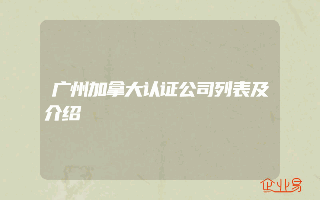 - 广州加拿大认证公司列表及介绍一、加拿大认证公司在广州的重要性随着中国与加拿大之间经贸合作的不断深化,加拿大认证公司在广州的角色日益凸显。这些公司不仅为本地企业提供了国际标准的认证服务,还为企业的国际化进程提供了有力支持。它们帮助企业在产品质