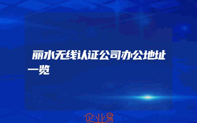 - 丽水无线认证公司办公地址一览一、公司背景简介丽水无线认证公司作为当地领先的无线通信行业服务提供商,致力于为企业提供各类无线通信技术认证服务。随着业务的不断扩展和服务需求的增长,公司办公地址也逐渐成为公众关注的焦点。二、主要办公地址概览丽水无