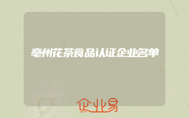 - 亳州花茶食品认证企业名单解析一、认证企业名单公布近期,亳州市公布了一批花茶食品认证企业名单,这是亳州市在加强食品安全监管、提升花茶产业质量方面的重要举措。名单中的企业经过严格的评估和审核,获得了花茶食品认证,标志着这些企业在花茶生产、加工、