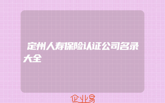 - 定州人寿保险认证公司名录大全