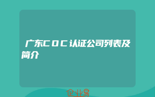 - 广东COC认证公司列表及简介一、广东省内COC认证公司概览在广东省,许多企业致力于提供全面的COC认证服务,以满足不同行业的特定需求。这些公司在协助企业达到国际质量标准和认证要求方面发挥着重要作用。以下是部分广东省内的COC认证公司列表及其