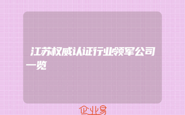 - 江苏权威认证行业领军公司一览一、行业概述江苏省作为中国经济的重要一极,其认证行业的发展势头迅猛,吸引了众多优秀企业的入驻。众多认证企业中,有几家公司凭借卓越的服务、专业的团队和深厚的行业经验,脱颖而出,成为行业领军。二、权威认证公司排名前列