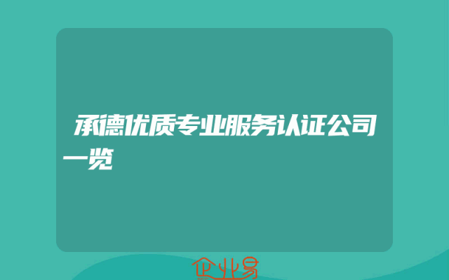 - 承德优质专业服务认证公司一览