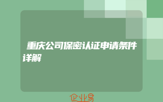 - 重庆公司保密认证申请条件详解