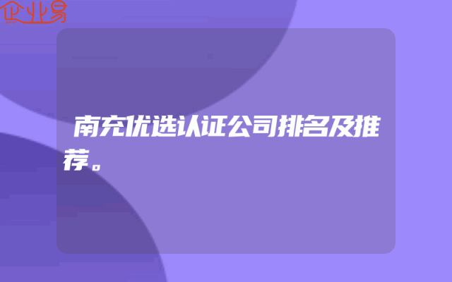 - 南充优选认证公司排名及推荐。