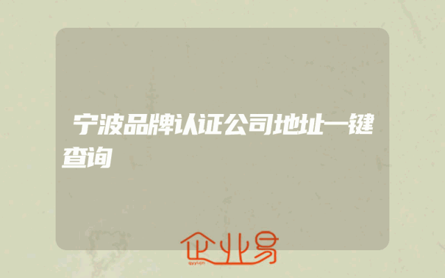 - 宁波品牌认证公司地址一键查询一、宁波品牌认证概述宁波作为浙江省的重要城市,众多企业在此蓬勃发展。品牌认证作为企业发展的重要里程碑,受到了广泛关注。在宁波,众多企业寻求品牌认证,以提升自身实力和信誉。因此,了解宁波品牌认证公司的地址信息对于企