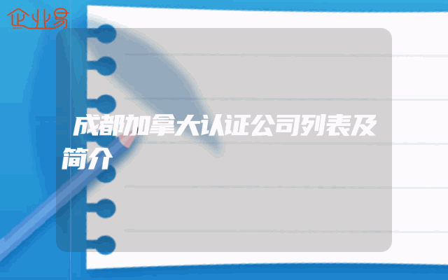 - 成都加拿大认证公司列表及简介一、引言随着中国与加拿大的经贸往来日益频繁,加拿大认证公司在成都的业务也逐渐增多。这些认证公司在确保产品质量和企业合规方面发挥着重要作用。以下是成都地区与加拿大相关的认证公司列表及其简介,以供企业参考和选择。二、