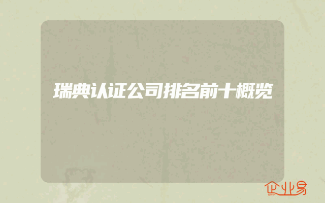 - 瑞典认证公司排名前十解析概览瑞典认证公司概述瑞典以其严谨、专业的认证服务在全球范围内享有盛誉。这里汇聚了一批国际知名的认证公司,它们在各个领域都发挥着重要的作用。本文将重点解析瑞典排名前十的认证公司,从多个角度阐述它们的优势与特点。排名及主