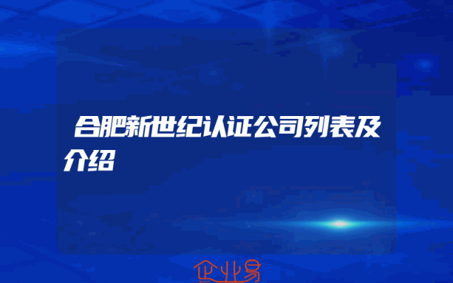 - 合肥新世纪认证公司列表及介绍一、合肥新世纪认证公司概览随着企业服务行业的蓬勃发展,合肥作为安徽省的省会城市,涌现出众多优秀的认证公司。这些认证公司在企业资质办理、认证服务等方面表现出色,为当地及国内外企业提供专业、高效的服务。二、部分认证公